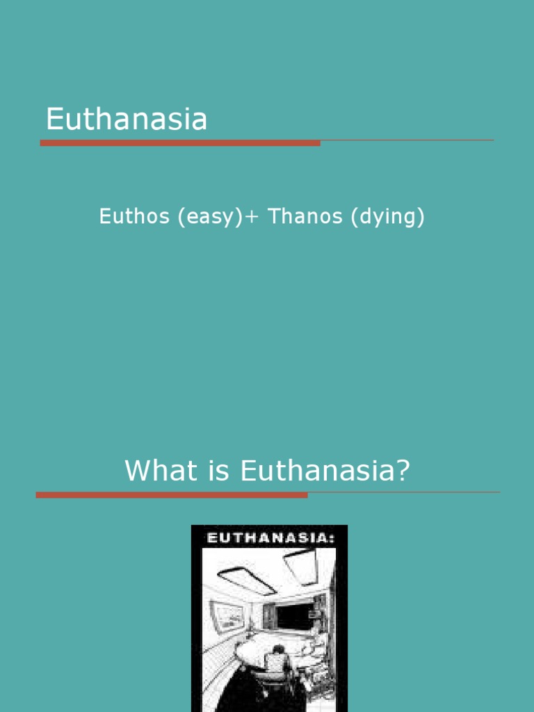 Jul 26, · Proponents of euthanasia and physician-assisted suicide (PAS) contend that terminally ill people should have the right to end their suffering with a quick, dignified, and compassionate death. They argue that the right to die is protected by the same constitutional safeguards that guarantee such rights as marriage, procreation, and the refusal or termination of life-saving medical treatment Euthanasia definition, the act of putting to death painlessly or allowing to die, as by withholding extreme medical measures, a person or animal suffering from an incurable, especially a painful, disease or condition. See more Euthanasia Pros and Cons Medical advances over the past hundred years have extend the life expectancy astronomically. Medicine provides hope that in the event of an “accident” we can be sure everything will be done to preserve our life, and that the healthcare community will exhaust all possibilities and resources in trying to accomplish this goal